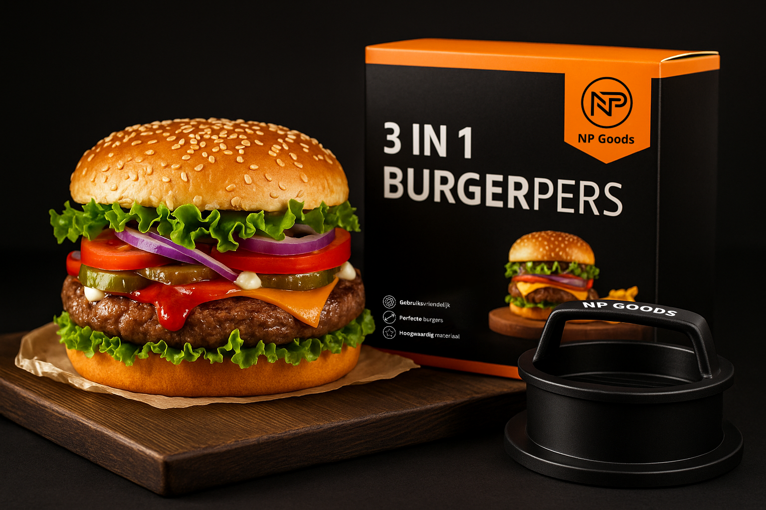 AanbiedingNP Goods Hamburgerpers 3 in 1