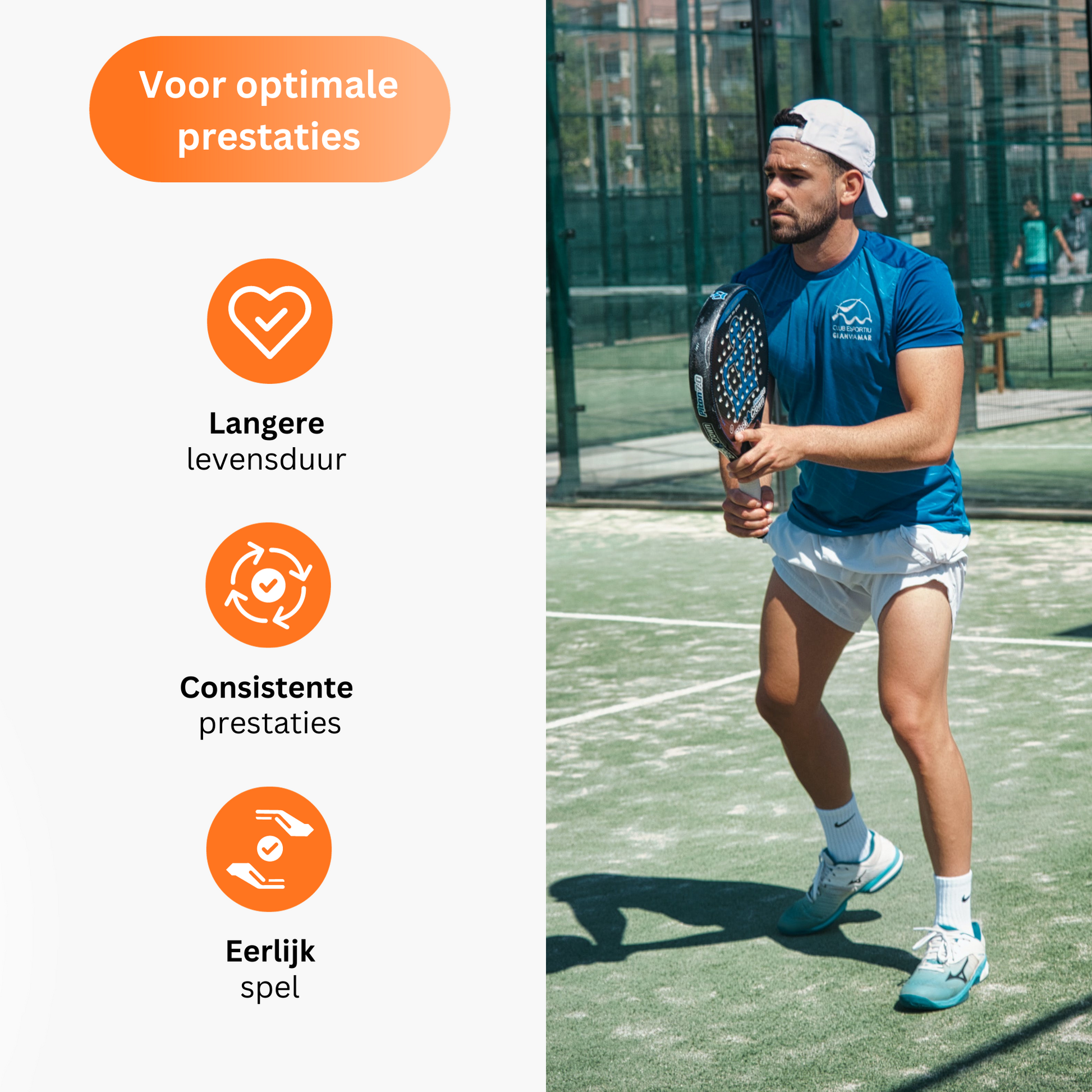 Onze drukregelaar zorgt ervoor dat de padelballenconsistent de juiste druk behouden, waardoor ze langer meegaan en constante prestaties leveren tijdens het spel. Dit voorkomt zachte, niet stuiterende ballen en vermindert irritaties tijdens het spel.